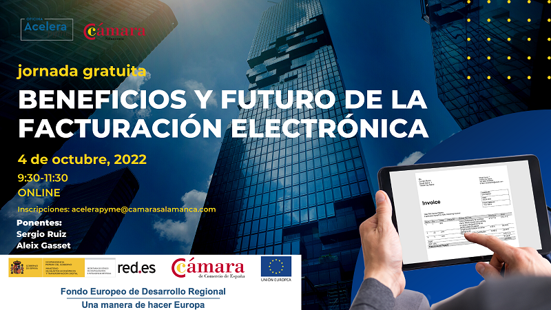 El martes día 4 de octubre, a las 9:30 horas, la Cámara de Comercio de Salamanca, realizará de forma online, la jornada: “Beneficios y futuro de la facturación electrónica”.