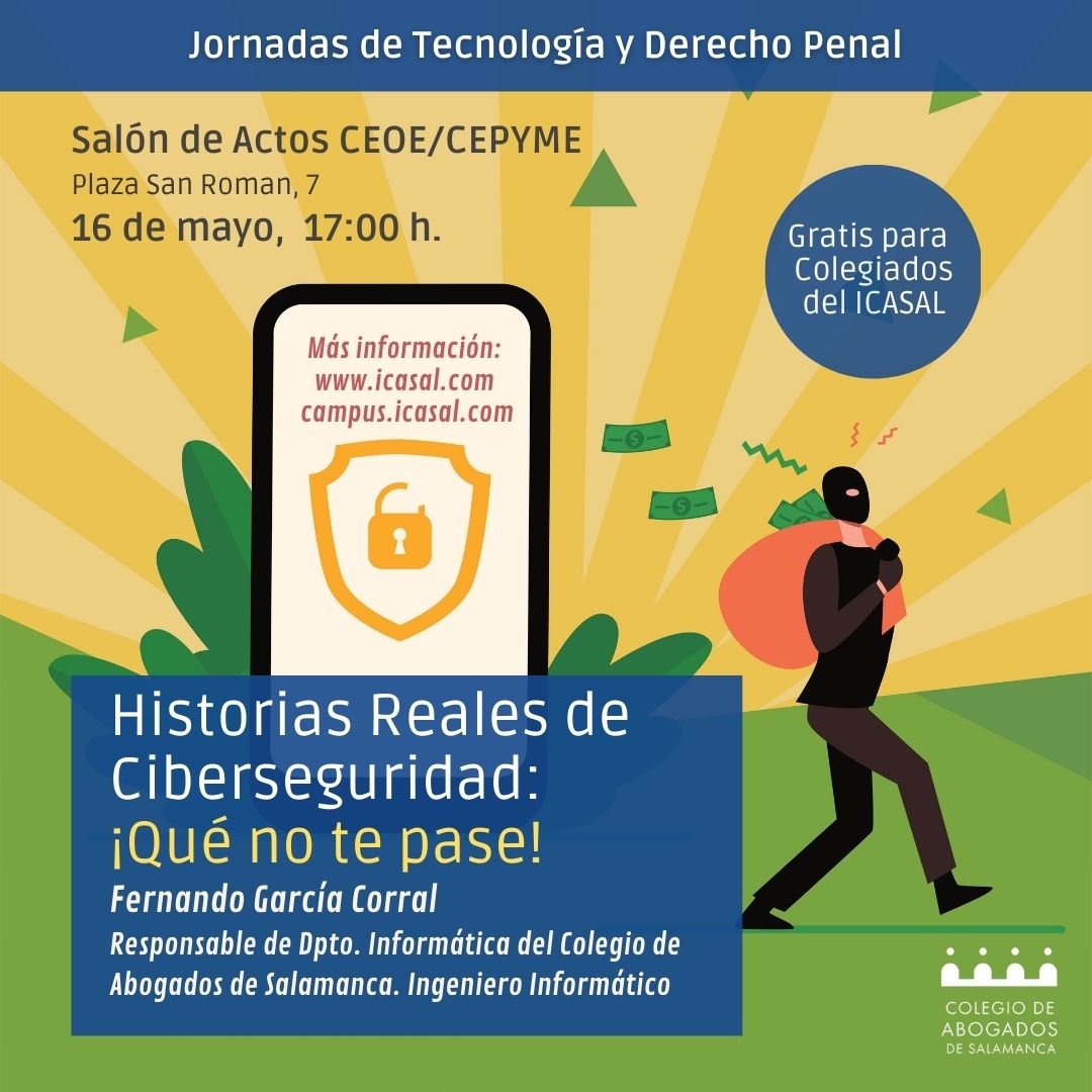 La primera sesión, titulada: Historias reales de Ciberseguridad. ¡Qué no te pase!, nuestro responsable de informática, Fernando García Corral abordará de manera práctica la cuestión, desde el punto de vista de técnico y de la divulgación de ciertos timos, engaños, phishing dirigidos a público en general y Abogados en particular. Durante la exposición tratará varios casos reales sufridos por colegiados o sus clientes, haciendo mención sobre la anatomía de la estafa y a su investigación desde el punto de vista policial y pericial. Durante la sesión se aclararán los términos técnicos utilizados, que pruebas son importantes en estos procedimientos, como aportarlas y además se proporcionarán algunas recomendaciones de seguridad.