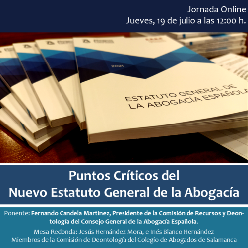 Todo esto y mucho más en la jornada del 19 de julio a las 12:00h. "Puntos Críticos del nuevo Estatuto General de la Abogacía"
