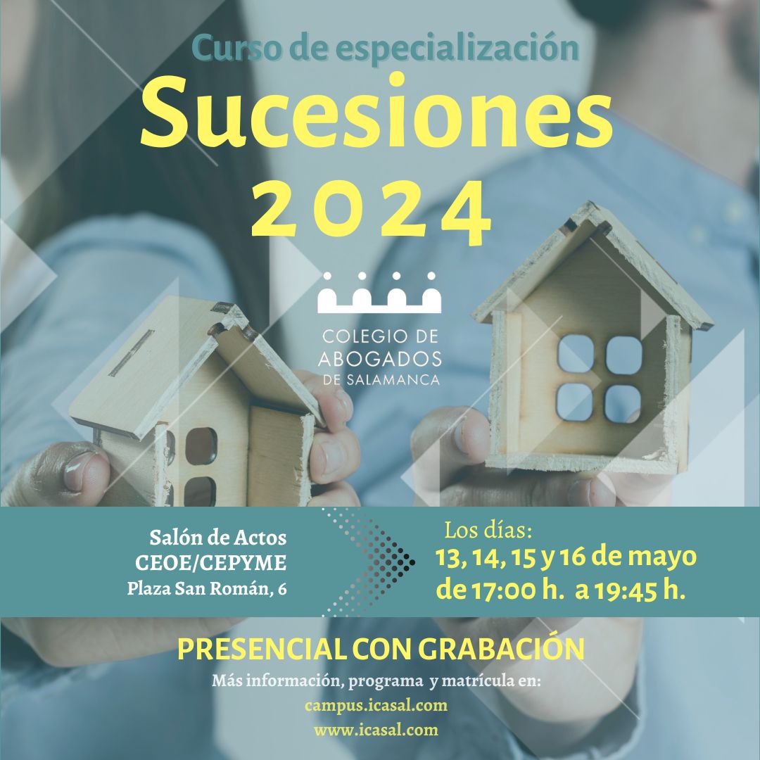 Matrícula para acceder a las grabaciones del Curso de Especialización en Derecho de Sucesiones, que se celebró durante los días 13, 14, 15 y 16 de mayo, y en sesiones de 17:00 a 19:30 horas cada día, en el Salón de Actos de CEOE/CEPYME (Plaza San Román, 6)