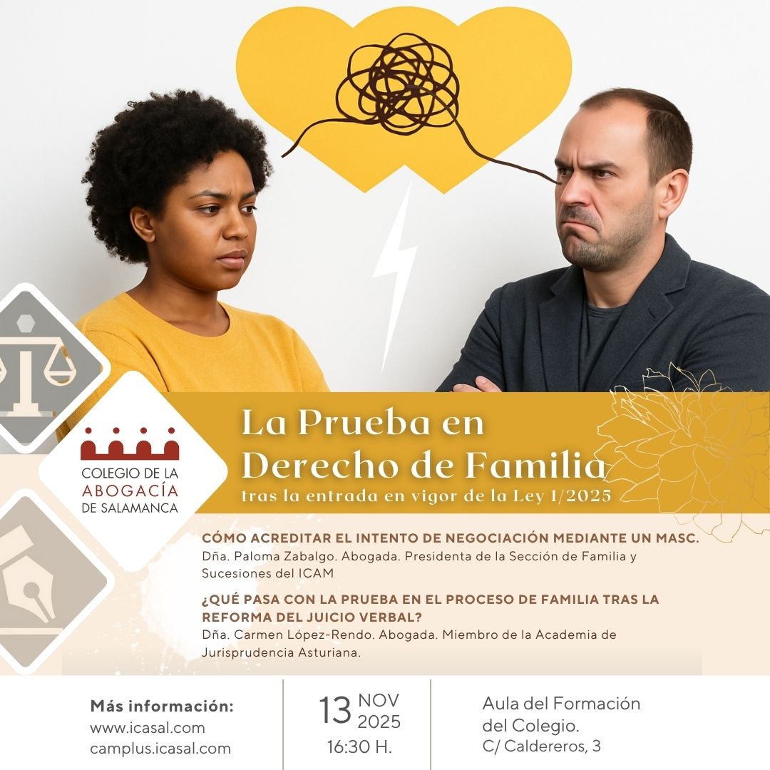 Para comprender los nuevos desafíos probatorios marcados por la Ley 1/2025, desde el Colegio hemos organizado el día 13 de noviembre, la jornada “La Prueba en Derecho de Familia con la Ley 1/2025”, donde contaremos con grandes profesionales: Paloma Zabalgo y Carmen López-Renedo / Grabación disponible